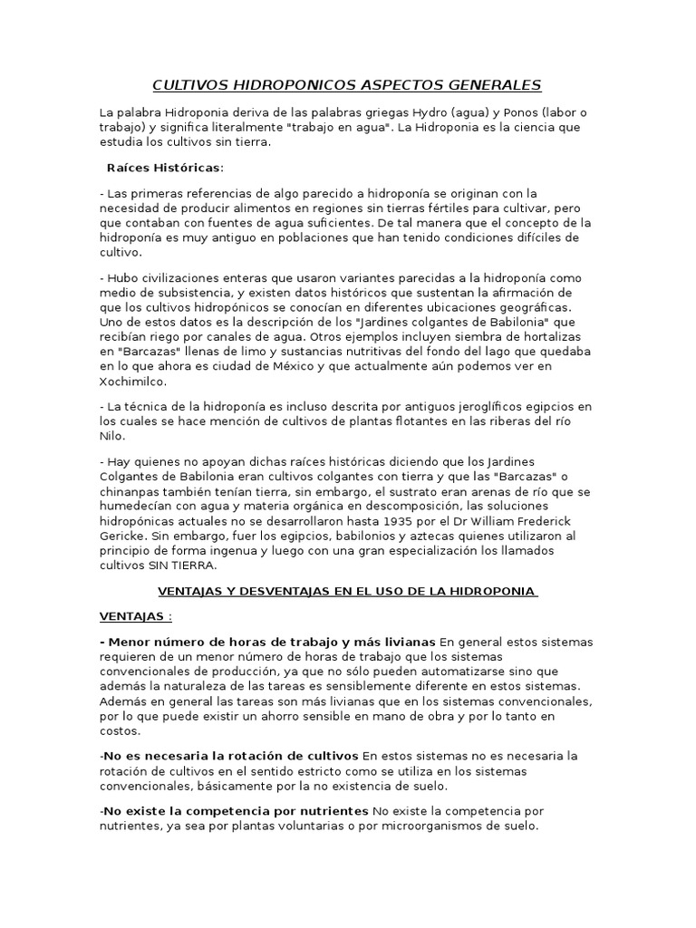 También se conoce como cultivo sin suelo, nutricultura, quimiocultura, cultivo artificial o agricultura sin suelo. la hidroponia tuvo su origen en el siglo xix, derivada de los estudios sobre las vías de absorción de los nutrientes por las plantas que realizaron fisiólogos como woodward y de saussure. cultivo hidroponico casero pdf También se conoce como cultivo sin suelo, nutricultura, quimiocultura, cultivo artificial o agricultura sin suelo. la hidroponia tuvo su origen en el siglo xix, derivada de los estudios sobre las vías de absorción de los nutrientes por las plantas que realizaron fisiólogos como woodward y de saussure.